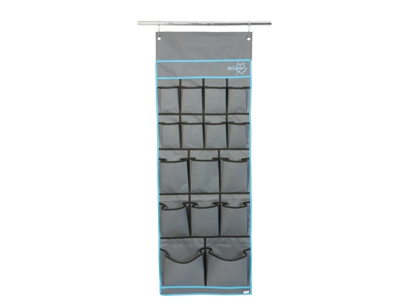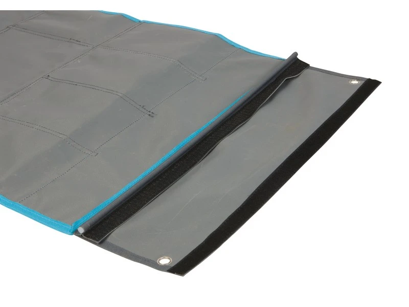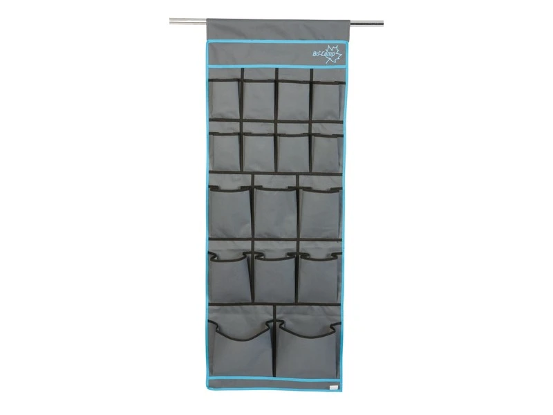 Een luxe multifunctionele organizer met 16 opbergvakken. Gemaakt van een hoge kwaliteit Two-Tone 600D Oxford Polyestervoor een extra lange levensduur. Beschikt over 2 ruime vakken, 6 medium vakken en 8 kleine vakken. Eenvoudig en op diverse manieren te bevestigen. Zo kan dit tentschort met de pees worden opgehangen aan een caravanrails, met het klittenband aan een tentstok of met de zeilogen aan haken. De lussen onderaan zorgen voor extra fixatie.