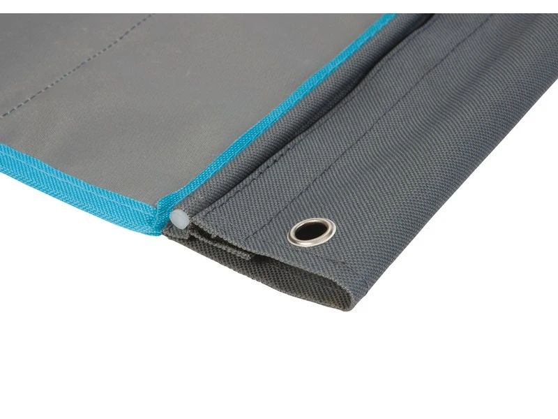 Een zeer sterk 6-vaks organizer. Beschikt over 2 ruime en extra verstevigde vakken en 4 kleinere vakken. Gemaakt van een hoge kwaliteit Two-Tone 600D Oxford Polyester. Eenvoudig en op diverse manieren te bevestigen. Zo kan dit tentschort met de pees worden opgehangen aan een caravanrails, met het klittenband aan een tentstok of met de zeilogen aan haken. De lussen onderaan zorgen voor extra fixatie.