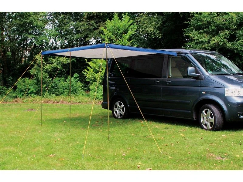 De luifel is voorzien van een pees voor de bevestiging aan de bus maar kan ook met de dakstang bevestigd worden. De luifel wordt incl. 3 luifeltentstokken, dakstang en klemmen geleverd.