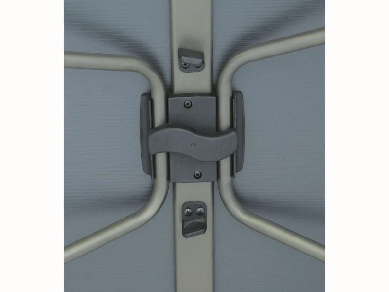 Aluminium kampeertafel voorzien van traploos verstelbare poten.