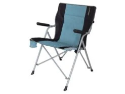 Zeer comfortabele vouwstoel voorzien van stabiele armsteunen en een breed zitvlak. De stoel heeft een stevig stalen frame en laat zich eenvoudig in vouwen. Het ruime zitvlak en hoog rugpand bieden een optimaal zitcomfort. De armsteunen kunnen omhoog geklapt worden waardoor je gemakkelijk aan tafel kunt schuiven. Incl. bekerhouder en draagtas. Leverbare kleuren: blauw/zwart, groen/zwart. Materiaal: 100% 600D Polyester, Frame: staal, Afmeting: 91x64x64cm