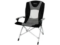 Hoogwaardige klapstoel met comfortabele aluminium armleuningen.