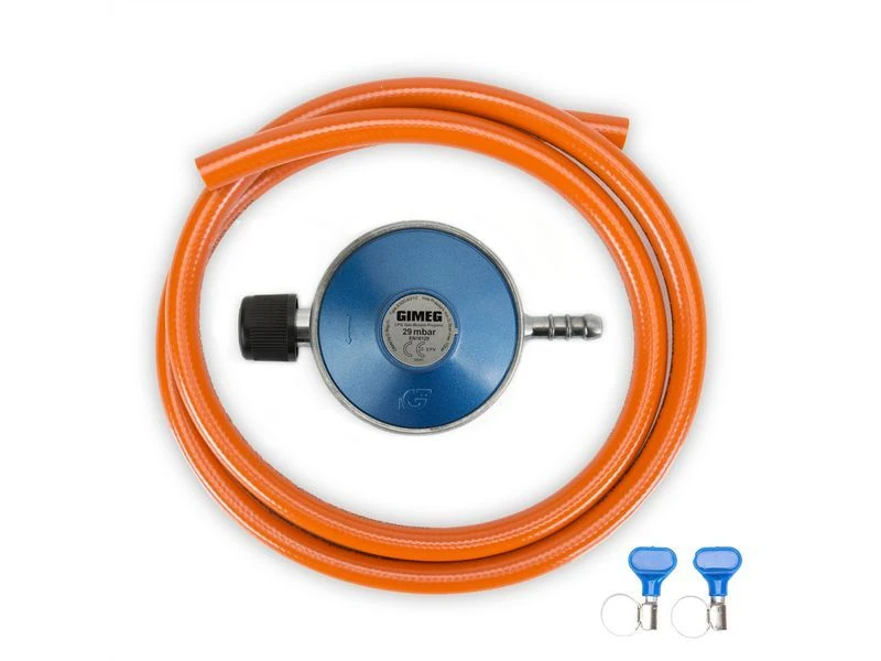 Met deze gasdrukregelaarset van 29 millibar sluit u uw gasfles met het grootste gemak aan op uw installatie. Wilt u binnen gas gebruiken? Bijvoorbeeld in uw camper, caravan of boot? Dan heeft u een gasdrukregelaar met afblaasbeveiliging nodig. Ook deze vindt u in het assortiment van Gimeg.