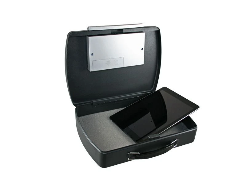 Digitale kluis met bovenopening. Voor het veilig opbergen van bijvoorbeeld een iPad. Geschikt voor tablets met maximale lengte van 29,5cm. Inclusief veiligheidskabel. De kluis kan ook geopend worden doormiddel van een sleutel.